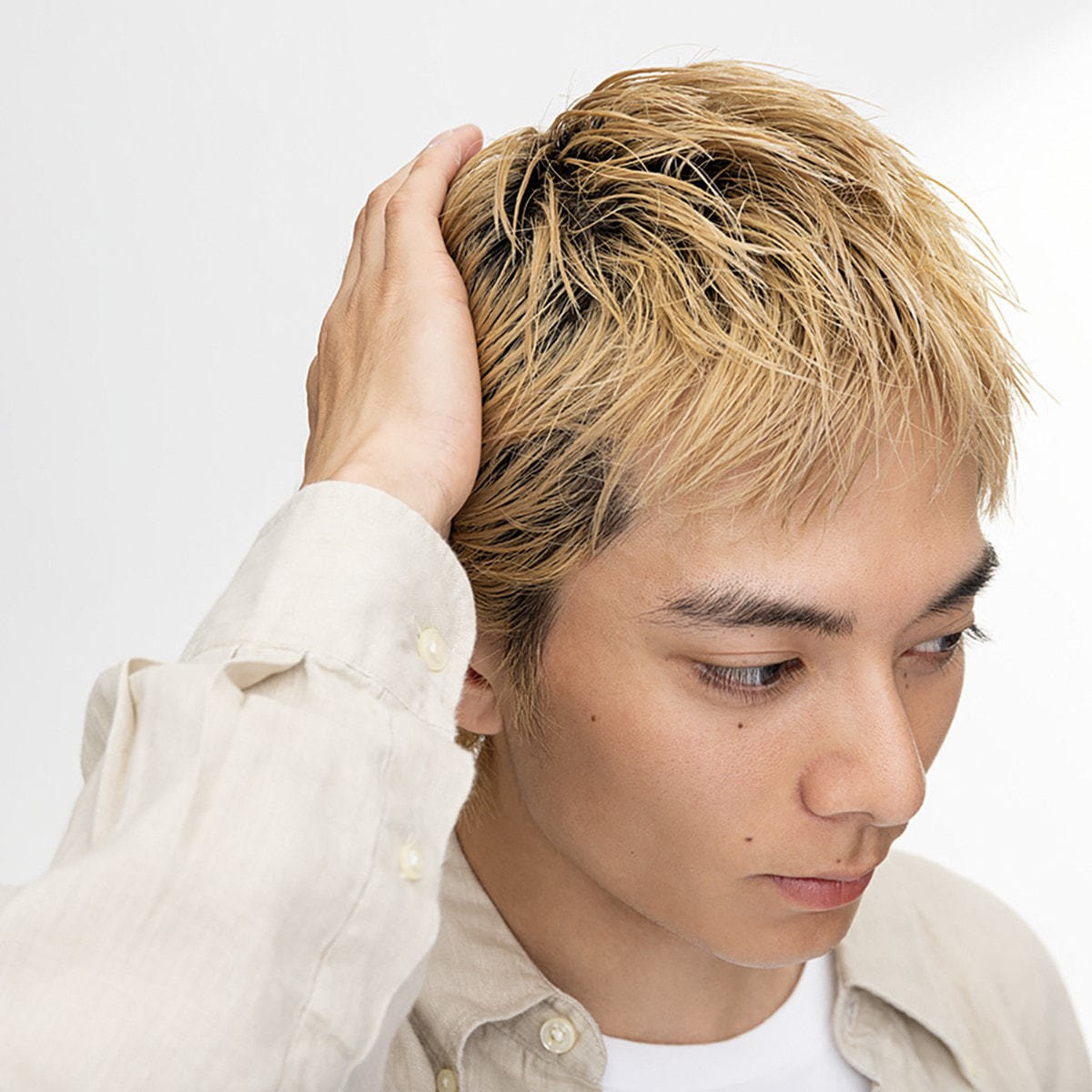 全体になじませた後、タイトにしたい部分は手で軽く抑え、立体感の欲しい部分は持ち上げるイメージで数秒キープさせます。